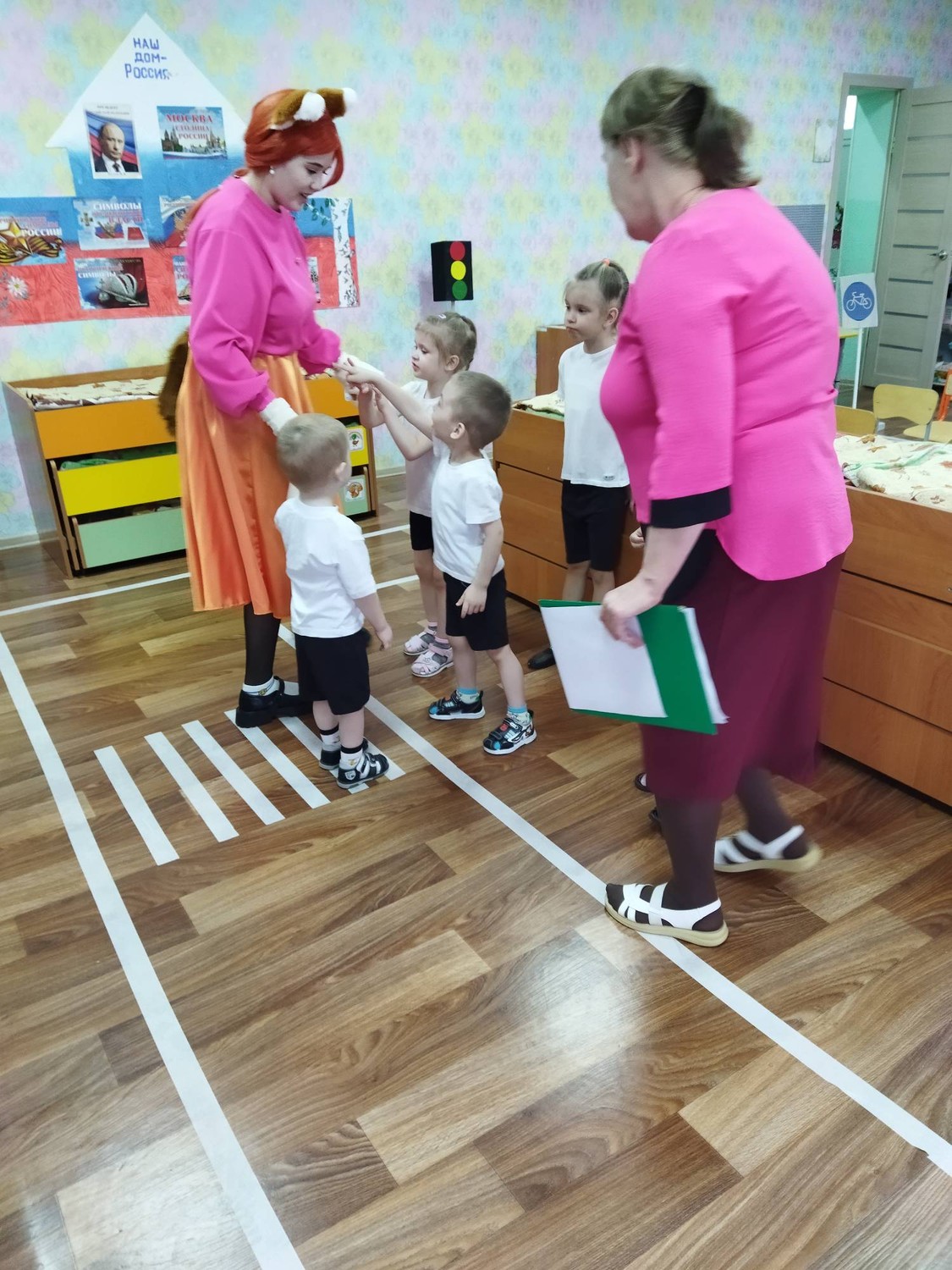 Воспитатели дошкольной группы уделяют большое внимание профилактике дорожно транспортного травматизма среди детей. Педагоги разработали цикл познавательных занятий, подготовили развивающую среду по обучению детей правилам дорожного движения. Как правильно вести себя на дороге? Что обозначают сигналы светофора? Для чего на дороге нанесены полоски? На эти и другие вопросы педагоги постарались ответить в игровой форме. В пятницу прошло познавательное развлечение, на которое пришла Лисичка. Ребята учили Лису правилам дорожного движения, показывали как правильно переходить дорогу, что правила должны соблюдать и водители, и пешеходы. Весело, играя, ребята познавали очень важные для жизни правила. | |