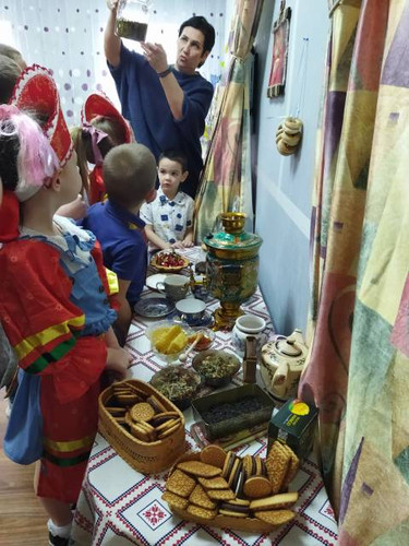 Педагог дополнительного образования Рожкова Е.Л. провела  в дошкольной группе познавательно-развлекательное мероприятие "Мы за чаем не скучаем! ". Ребята узнали как в давние времена ценился чай, о видах чая, способах заварки, о традициях, связанных с употреблением чая. Ребята попробовали различные виды чая, поиграли в игры, а в завершение, угостились ароматным чаем с русскими пирогами.