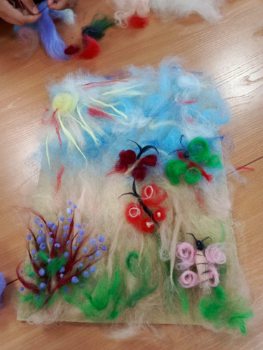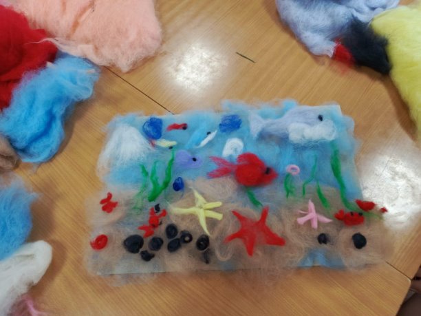 В библиотеке с. Новосельцево прошел мастер-класс, на котором дети смогли погрузиться в мир творчества и попробовать себя в новом виде искусства — создании картин из шерсти. Под руководством педагога дополнительного образования Елены Львовны Рожковой, ребята не только научились работать с шерстью, но и раскрыли свои творческие способности. После краткого введения и демонстрации процесса работы с шерстью, ребята с энтузиазмом принялись за дело. Разделившись на группы, они выбрали разные темы для своих картин. Первая группа решила изобразить "Морское дно", погрузившись в мир подводной жизни с яркими рыбками, китом, крабами, медузами. Вторая группа выбрала более спокойную тему — летнюю картину с сиренью и бабочками, которая напоминала о теплых солнечных днях и радости природы. В результате мастер-класса появились настоящие произведения искусства! Каждая картина была уникальна и отражала индивидуальность ее создателя. Такой опыт стал не только возможностью освоить новый вид творчества, но и отличным способом провести время в кругу единомышленников. | |
