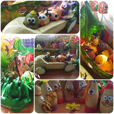 "Дары осени" - под таким названием в нашем центре действует выставка работ из овощей и фруктов. Забавные гномики, веселые матросы и чудо-корабль из арбуза, ретро-автомобиль из кабачка, человечки из овощей.... Приходите посмотреть! | |