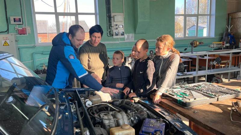 Экскурсию в Парабельский филиал ТПТ провела педагог дополнительного образования Рожкова Е.Л. Тема: "Профессии и инструменты". Ребята познакомились с профессией "Автомеханик". Воспитанники центра побывали в учебной мастерской ТПТ, мастер производственного обучения показал ребятам, как работает двигатель автомобиля, рассказал об основных механизмах. Получив теоретические знания, наши воспитанники закрепили их на тренировочном стенде, а также сами оказались за рулём настоящего учебного автомобиля. | |