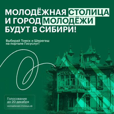 На портале «Госуслуги» идёт народное голосование за «Молодёжную столицу России» и «Город молодёжи». В числе претендентов — два наших сибирских сердца: Томск и Шерегеш!