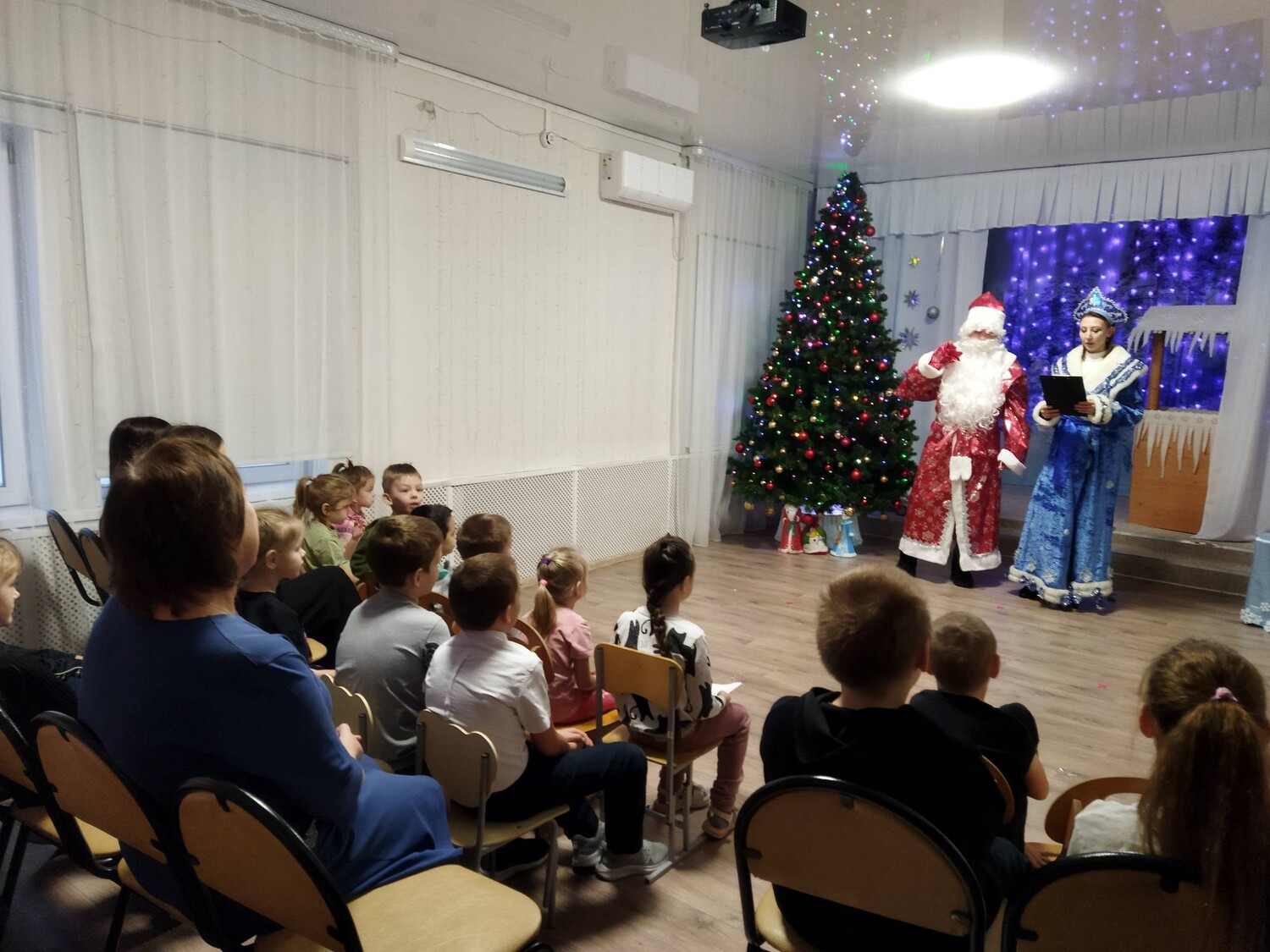 Ребята рассказывали стихи, водили хоровод, пели песни, а также поздравили гостей с праздником и подарили подарки сделанные своими руками. Дедушка Мороз со Снегурочкой поздравили всех присутствующих с Новым годом и подарили подарки. Дети и взрослые выражают большую благодарность коллективу отделения Госавтоинспекции МО МВД России "Парабельское" за внимательное отношение и необычное поздравление с праздником.