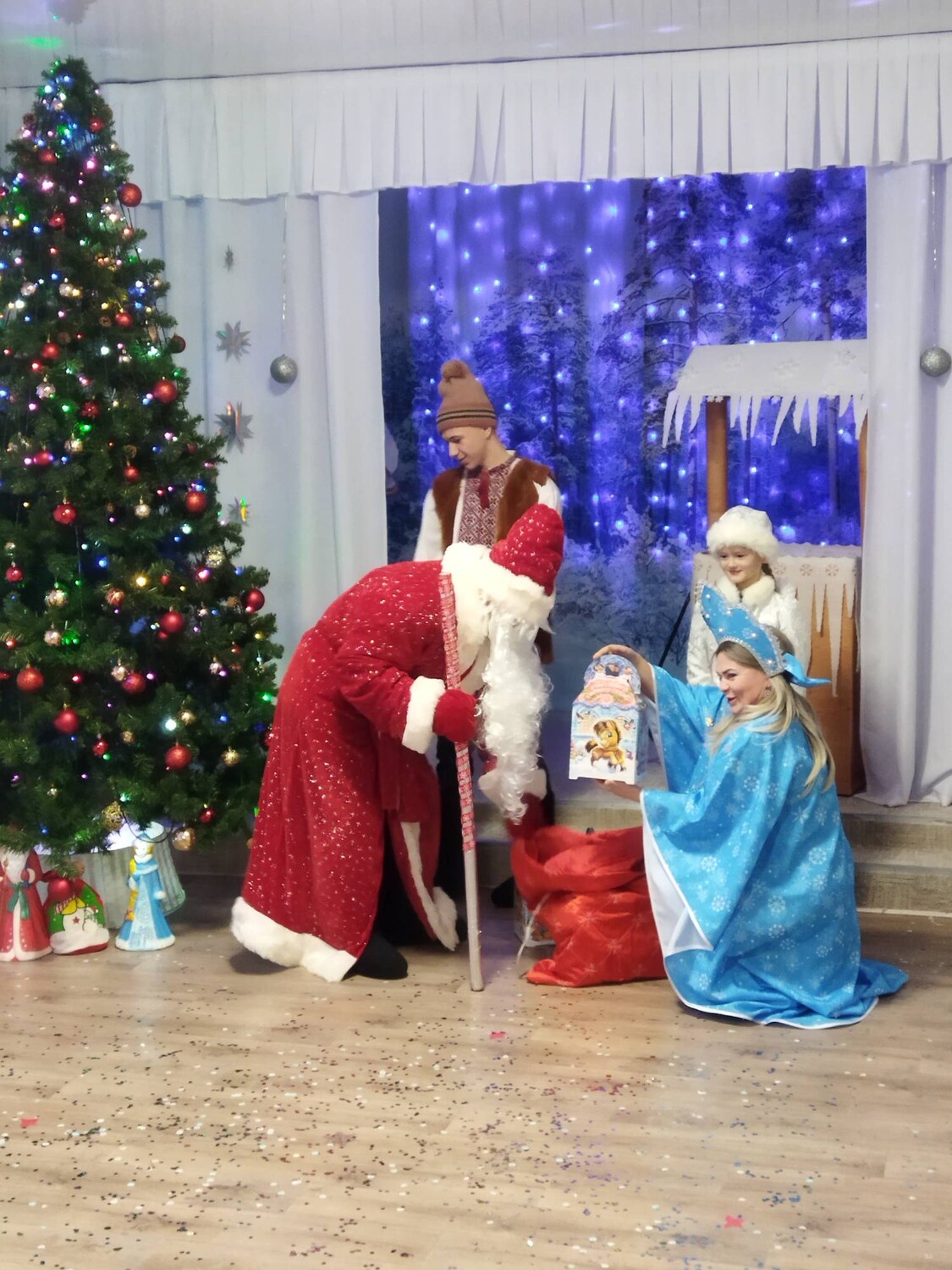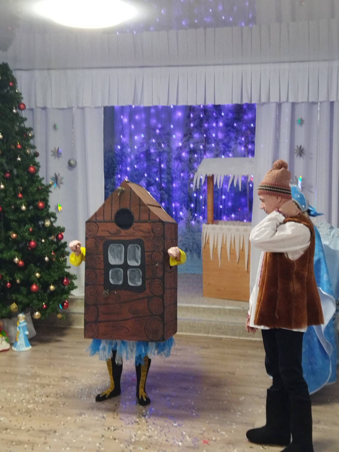 "Когда елка зажигает огни" - так называлось веселое сказочное представление, подготовленное педагогами центра для ребят школьного возраста. Необычный сюжет всем известной сказки увлек взрослых и детей, зрители переживали вместе с Иванушкой, когда он по-глупости называл желания щуке, а потом от них отказывался. Сказочные герои, неожиданно появившиеся на празднике - Змей Горыныч, марья-Царевна, Щука, Зимушка-зима, Избушка на курьих ножках удивили всех! Красивый танец снежинок, веселые праздничные песни, стихи Деду Морозу - все с восторгом и бурными аплодисментами встречали зрители. В подготовке к празднику приняли участие не только педагоги центра, но и родители, роль Иванушки сыграл студент ТПТ Савельев А., роль Снегурочки сыграла наша воспитанница - Колупаева Геля. Праздник получился чудесный, сказочный, волшебный!!! | |