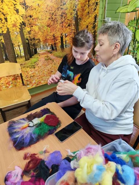 Педагог дополнительного образования Рожкова Е.Л. провела занятие с замещающей семьей по изготовлению картины из шерсти. Работа "Рождественская свеча" Агеевой Вики с мамой займет достойное место на районной Рождественской выставке. | |