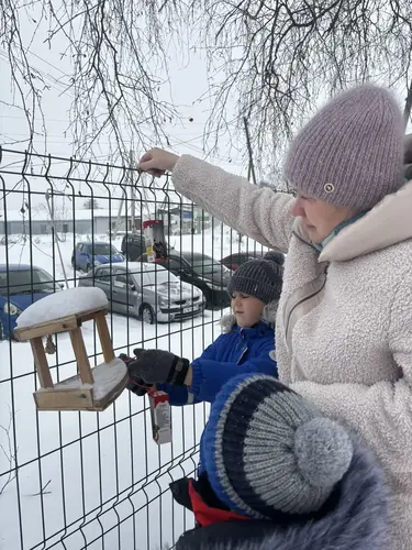 Зимой наши ребята не забывают о самых важных – о наших пернатых друзьях. В это время года птицам труднее находить пищу, и наши ребята стараются им помочь. Они крошат хлеб, чтобы он превратился в мелкие кусочки, и подсыпают семечки. Иногда они даже готовят настоящий торт для наших меньших друзей, который состоит из семечек, пшена и перекрученного сала. На такой угощение собираются птицы самых разных видов, от маленьких до крупных сорок.