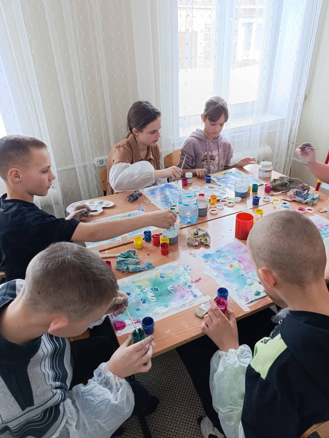 Каждый день каникулярной недели насыщен различными мероприятиями. Ребята плавали в бассейне, ходили в поход, принимали участие в КВН, смотрели в кинотеатре "Спектр" фильм "Доктор Гаф"... Сегодняшний день - творческий, в "Творческой лаборатории" нашего центра ребята познакомились с интересным способом рисования. Дети впервые, как настоящие художники, смешивали гуашь в палитре и на листке, рисовали различными кистями и даже пальцами. Такое рисование способствует улучшению настроения, получению удовольствия от процесса рисования и открытию в себе неизвестных граней своего таланта. Увлекла ребят необычным рисованием Дементьева Елена Валентиновна. | |