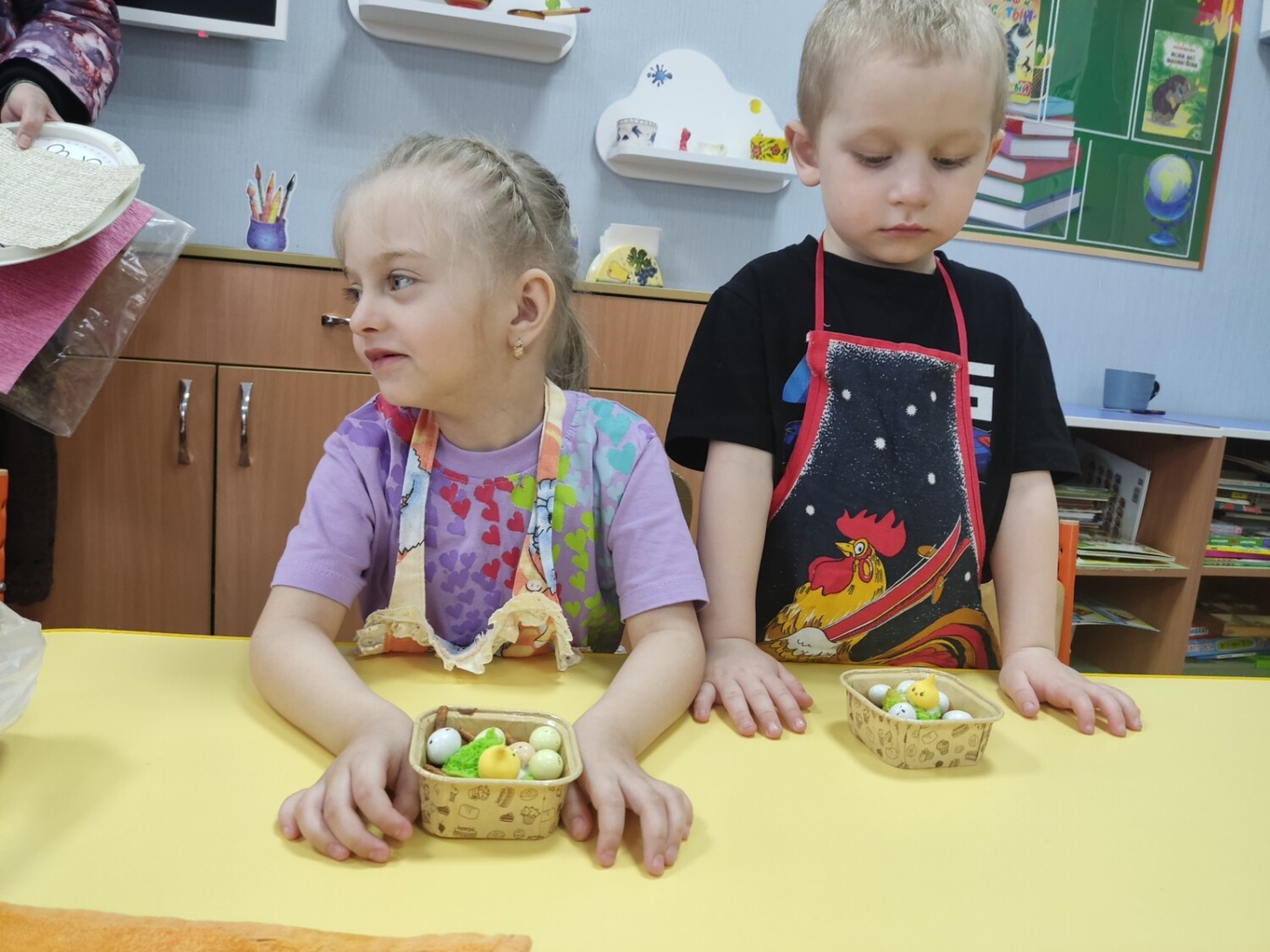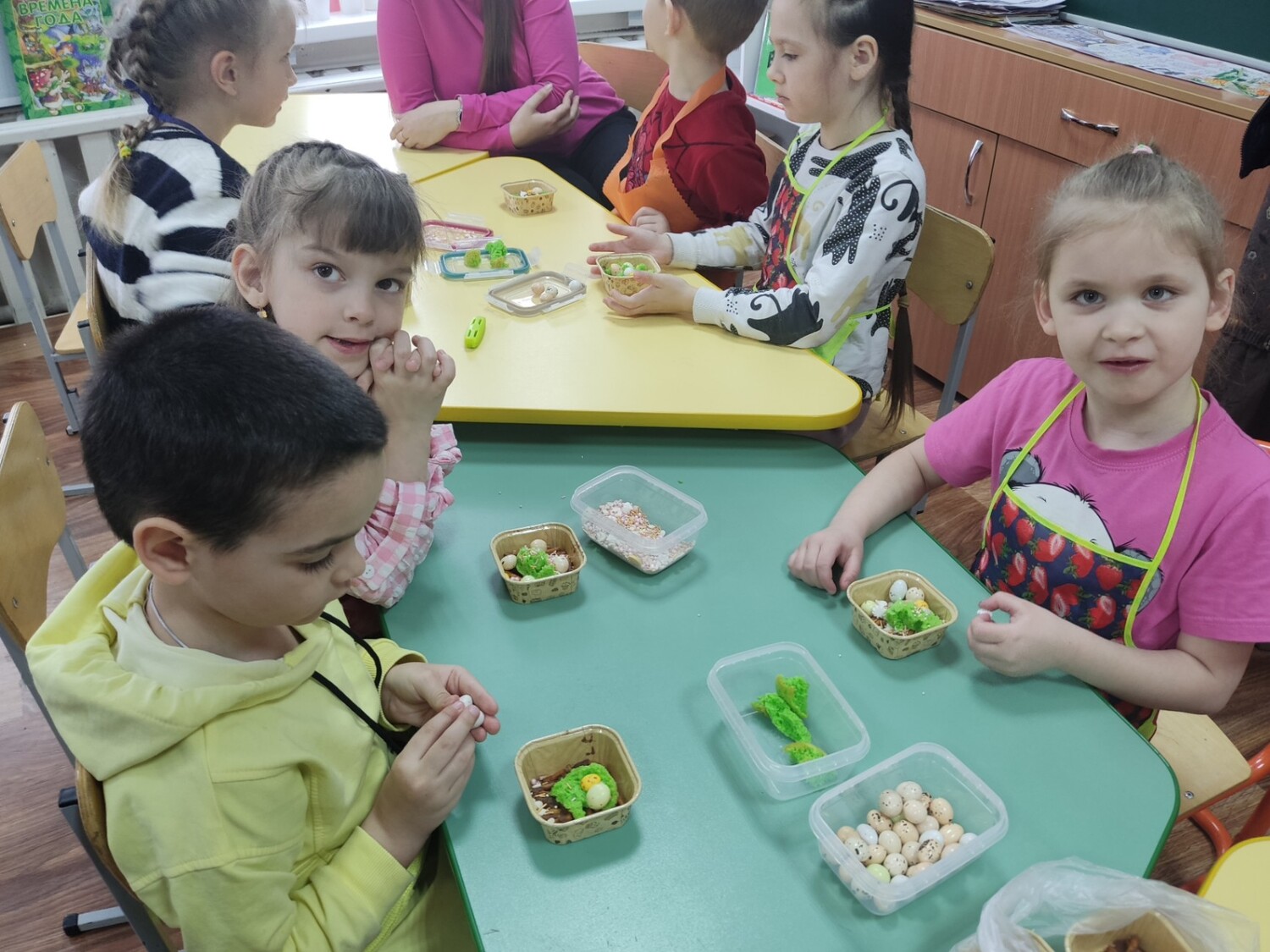 В группе «Звёздочка» прошёл волшебный кулинарный мастер класс — малыши готовили пасхальные гнёзда под руководством педагога-психолога Латыголец Александры Васильевны! Крохотные кондитеры с восторгом помогали подготовить ингредиенты, аккуратно доставали готовые шоколадные гнёздышки. Украшали их яркими пасхальными шоколадными яйцами, бисквитным мхом, разноцветной посыпкой, глазурью и сахарными цыплятами. Глаза детей светились радостью, а на лицах сияли счастливые улыбки. Каждый с гордостью унесёт домой своё съедобное творение — и, конечно же, успели отведать кусочек прямо на месте. Этот день подарил ребятам море положительных эмоций и приобщил к праздничным традициям!