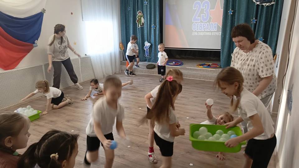 В группе «Звёздочки» состоялся спортивный праздник, посвящённый 23 февраля, под названием «Буду Родине служить!» На мероприятии присутствовали папы, братья и мамы, которые пришли поддержать своих детей. Ребята разделились на две команды: «Лётчики» и «Танкисты». Праздник начался с задорной песни, которая подняла настроение и создала позитивную атмосферу. Затем ребята сделали зарядку, это помогло им размяться и подготовиться к соревнованиям. После этого команды представили себя и начались эстафеты, в которых юные участники продемонстрировали свои навыки, внимательность, мужество, скорость и смекалку. | |