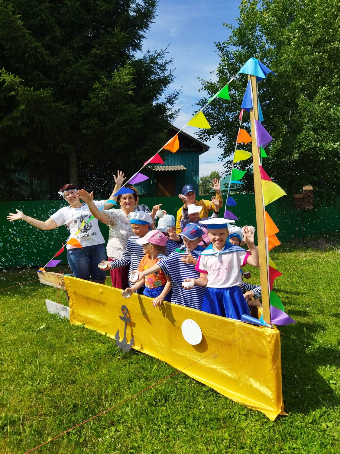 Веселый спортивный праздник, посвященный Дню моряка прошел в нашем центре. В празднике участвовали две команды воспитанников - "Морские волки", "Морские ракушки". Ребята плыли на корабле, украшенном флажками, выполняли различные задания. Команды соревновались в ловкости и быстроте, отвечали на вопросы, отгадывали загадки. Награды участникам вручили морские - настоящие огромные ракушки, сладости - "морские камушки". Детскому восторгу не было предела, когда в завершение праздника были запущены мыльные пузыри! | |