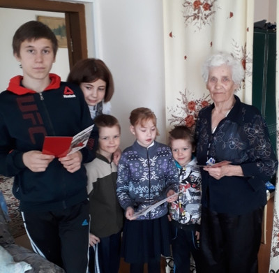 Накануне 9 мая воспитанники нашего центра посетили ветерана Великой Отечественной войны Анастасию Назаровну Образцову. Дети внимательно, затаив дыхание, слушали рассказ ветерана, задавали вопросы о войне, интересовались медалями, которые были вручены Анастасие Назаровне за боевые заслуги, ведь она прошла тяжёлые годы войны, видела смерть, потери, слёзы…. Но сегодня на её глазах были только слёзы радости и счастья при виде детей, которые помнят, чтят и благодарят за подвиг. Дошкольники подарили ветерану красивую поздравительную открытку, выполненную своими руками. Старшие ребята рассказали стихи, а затем все вместе спели песню «Шли солдаты на войну». Минуты, проведённые рядом с участницей Великой Отечественной войны, ценны для каждого из ребят, ведь есть возможность отдать долг, дань уважения и памяти всем тем, кто сражался за чистое, мирное небо над нашей головой, всем, кто не дожил до наших дней и тем, кому мы можем лично в этот день сказать «спасибо». Мы пожелали Анастасие Назаровне крепкого здоровья, долгих лет жизни, поблагодарили за подвиг во имя мира на земле и поздравили с наступающим праздником – днем Победы. Ребята со слезами на глазах и с искренней дрожью в голосе сказали ветерану: «Большое спасибо за жизнь!».