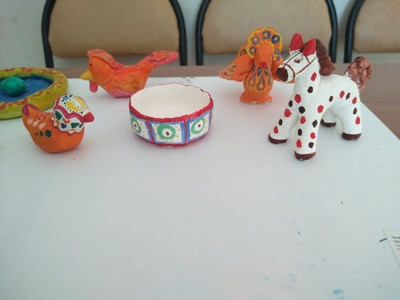 Занятие по изготовлению дымковской игрушки с детьми из замещающих семей провела социальный педагог Груднова С.И. Это одно из нескольких мероприятий, посвященных Году народного искусства и нематериального культурного наследия народов России, проводимых специалистами службы сопровождения замещающих семей. На первом занятии педагог познакомила детей с народными ремеслами России. Дымковские игрушки – это уникальные глиняные игрушки разных форм, раскрашенные яркими красками и не имеющие аналогов в мире. Педагог рассказала ребятам, что тематика современной дымковской игрушки разнообразна: это могут быть фигурки животных, любимые сказочные герои, исторические сюжеты, фигурки детей и их семей, различных профессий и предметов старины. Дымковскую игрушку делают из ярко-красной глины, которую перемешивают с мелким коричневым речным песком. Ребята познакомились с порядком изготовления игрушки. Это процесс творческий, никогда не повторяющийся, начиная с лепки и оканчивая росписью игрушки. Дети проявили свою фантазию в росписи игрушки, тем самым, каждая сделанная работа, была неповторима и уникальна. | |