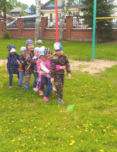 дружной командой перевоплотились в одну веселую гусеницу и прошли спортивную дистанцию
