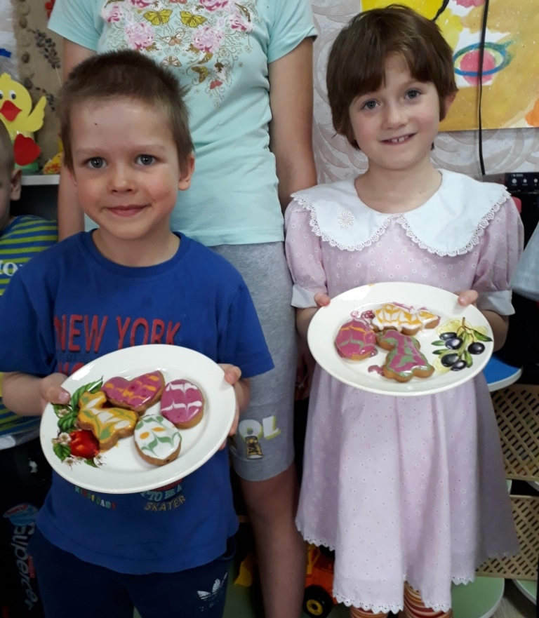 20 апреля для детей группы круглосуточного пребывания Рожкова Елена Львовна провела мастер – класс по росписи именных имбирных пряников. До мастер-класса дети познакомились с историей пряников, посмотрели презентацию про архангельские пряники и приемы росписи. Ребятишки сами выбирали понравившиеся пряники. А затем, совместно с воспитателем, ребята принялись за увлекательное дело. Роспись пряников по мокрой глазури, для такого вида рисования, была необычна и интересна. Главное в таком деле — удержаться и не съесть все сразу, а сделать это сложно, ведь пряники получились очень ароматные и яркие!