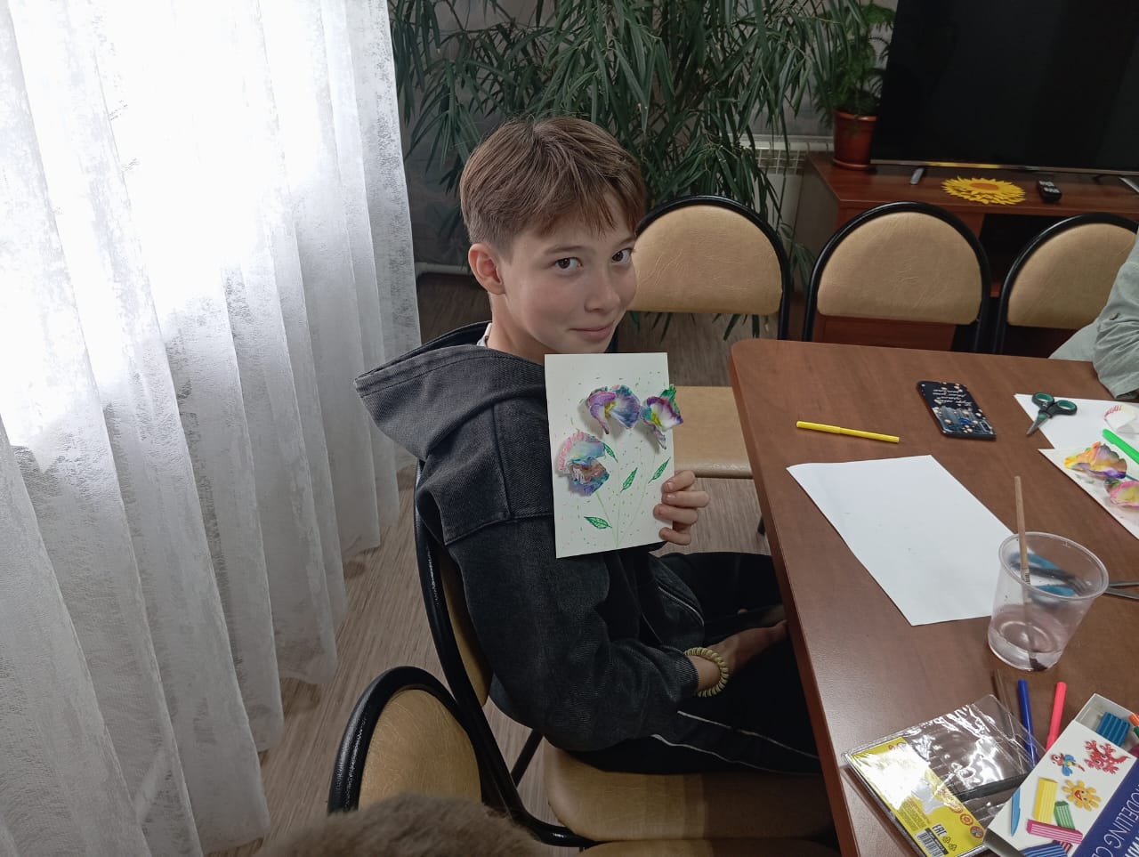 В преддверии Дня старшего поколения специалисты службы СЗС провели мастер - класс "Подарок для бабушки", на который пригласили ребят из замещающих семей. Они показали детям, как сделать красивые открытки с объемными цветами для своих близких. Педагоги объяснили ребятам, с чего лучше начинать. И работа закипела! Ребята сделали красивый фон для своих открыток, наметили место для цветов, а затем преступили к сбору всей открытки. Работы получились яркие, красивые, индивидуальные, так как каждый из ребят включил свою фантазию и воображение. Дети с большим интересом и удовольствием окунулись в творческий процесс. Замечательные поздравительные открытки, сделаны с душой! Полюбуйтесь! Благодарим всех, кто мастерил в этот день с нами! Специалисты ССЗС: Кабанова А.С., Бубнова М.С. | |