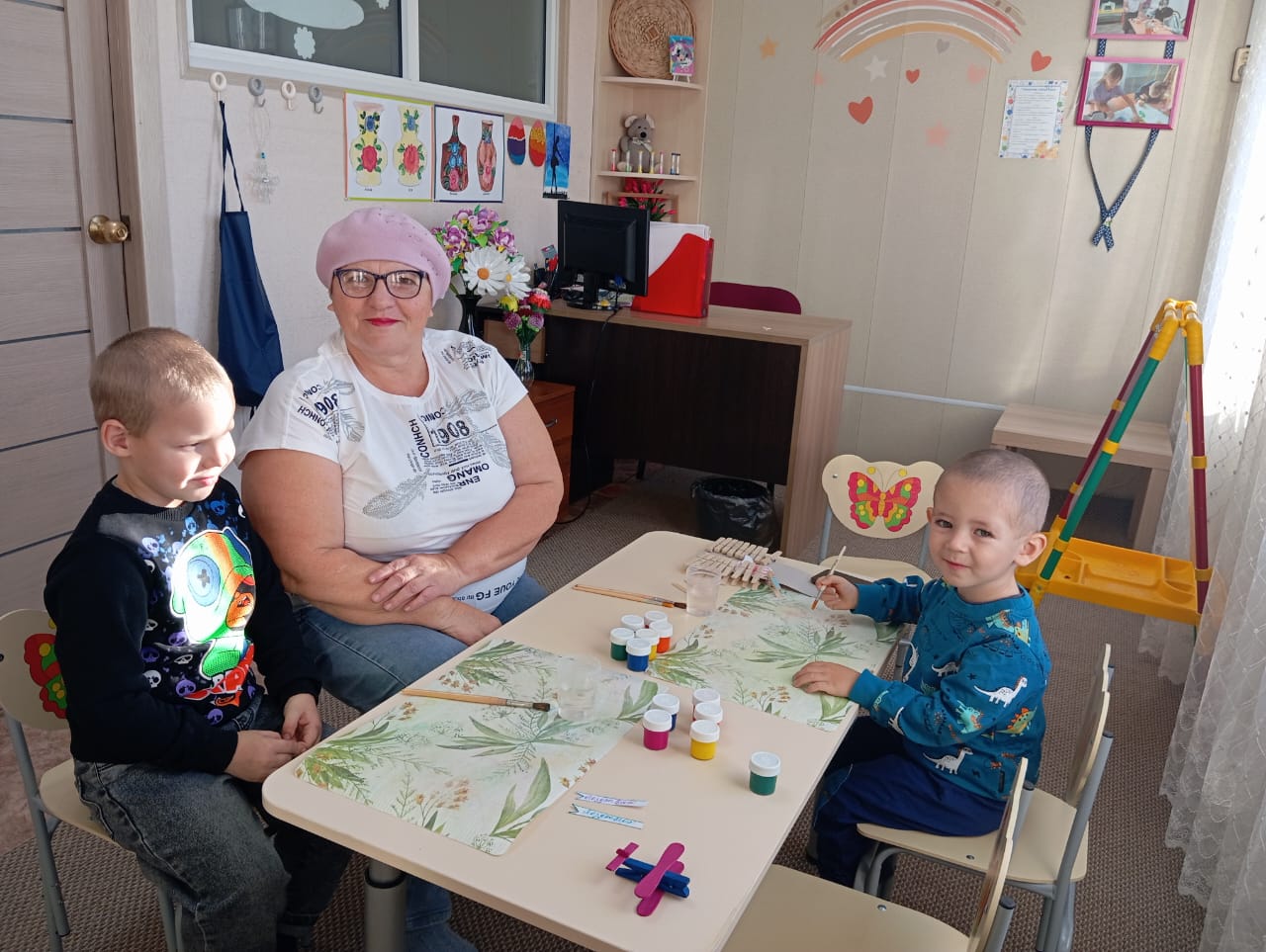 В нашем центре прошел увлекательный и интересный мастер класс для самых маленьких ребят из замещающих семей, который назывался «Подарок для папы». Специалисты службы сопровождения подготовили прищепки, палочки от мороженого, кисти и краски, клеевой пистолет и даже фен. Ребят очень заинтересовал этот набор. А когда педагоги показали, что из этих предметов может получиться самолет, малыши с удовольствием преступили к работе.