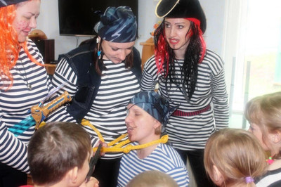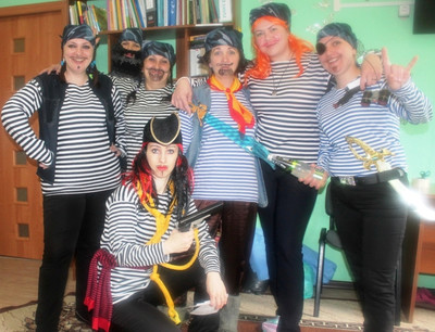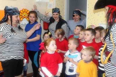 1 июня педагогами нашего центра был организован веселый спортивно-развлекательный праздник «В поисках сокровищ». Вместе с командой пиратов Джека Воробья (методист Стребкова Е.В.) дети-матросы отправились в увлекательное морское путешествие на корабле «Черная жемчужина». Им предстояло найти четыре части карты. Чтобы добраться до острова, где Грозный Гарри (воспитатель Гурская Л.Н.) спрятал свой обрывок карты, ребятам пришлось пройти полосу препятствий, пережить наводнение и вплавь отправиться дальше. Рыжий Генри (педагог-психолог Горшкова Е.В.) устроил танцевальный батл, Черная Борода (воспитатель Костарева О.И.) проверил творческие способности матросов, а Джон Деревенная нога (воспитатель Сень В.А.), у которого оставался последняя часть карты, провел конкурс на сообразительность и эрудицию. Матросы прошли все испытания и получили карту сокровищ Капитана Флинта. Но радоваться было рано: хитрые пираты Слепой Пью (воспитатель Моор Н.А.) и Бешеный Френк (воспитатель Фриз Е.А.) похитили карту. Смелая и отважная команда моряков отправилась в погоню, настигла беглецов и завладела картой. Проявив сообразительность, ребята сложили обрывки и нашли спрятанные сокровища. В игровой и непринужденной атмосфере дети еще раз убедились, как важно помогать и поддерживать друг друга, работать в команде и никогда не падать духом! Дружная команда "пиратов" | |
