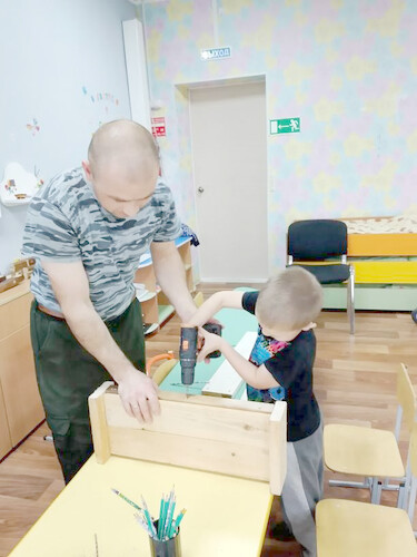 На улице пасмурно и дождливо, нет солнца и тепла, а в группе у дошколят тепло, радостно и уютно! В гости пришли самые дорогие родные люди! Дети сказали много комплиментов добрых слов своим папам, мамам и бабушкам, а в подарок подарили песню. Интересная встреча продолжилась мастер-классом "Мебель куклам" от папы - Панова Сергея Васильевича. Сергей Васильевич заранее приготовил заготовки из дерева для изготовления кукольной кроватки. Папа рассказал и показал ребятам из каких деталей состоит кровать и порядок сборки. Процесс изготовления увлек всех: и взрослых, и детей! Замечательная кроватка получилась! Большое спасибо Сергею Васильевичу! Вот пример настоящего современного папы!!! Он всё успевает и умеет!!!