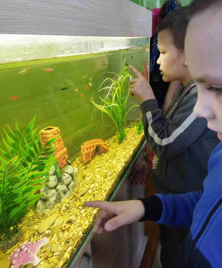 Как радовались и удивлялись наши воспитанники, глядя на маленьких обитателей аквариума! Ведь многие увидели аквариум впервые, познакомились со специальным аквариумным оборудованием, правилами ухода за рыбками, как правильно их кормить, какая температура воды должна быть, чтобы рыбки не испытывали стресс.
