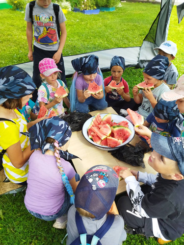 Ежегодно в летний период в нашем центре проводится туристический праздник. В этом году праздник посвящен 80-летию Томской области. На площадке центра устанавливаются палатки, полоса препятствий, дети приходят в соответствующей экипировке. На маршруте ребята отвечали на вопросы о родном крае, растениях и животных Томской области. Рассказывали о соблюдении правил техники безопасности, отгадывали загадки, преодолевали препятствия. По компасу дошли до костра, расположившись вокруг - пели туристические песни. Сюрпризным моментом был вкусный, сладкий арбуз! Туристические соревнования для наших воспитанников организовала и провела педагог дополнительного образования Рожкова Е.Л. | |