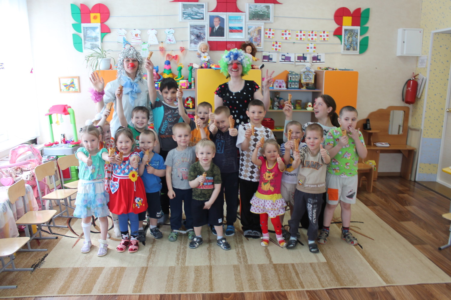 Апрель начался весело в группе дневного пребывания. В гости к ребятам пришли клоуны: Чупа (Моор Н.А.) и Чупс (Костарева О.И.). Они устроили озорной переполох, дети пели песенки различными голосами животных, отгадывали шуточные загадки. Чупа и Чупс провели озорную эстафету "Собери мусор", игру "Попугай", предложили ребятам заселить в пустующий дом веселых человечков. Все задания ребятишки выполняли весело, с задором. Хорошее настроение и вкуснейшие волшебные трубочки подарили педагоги воспитанникам! | |