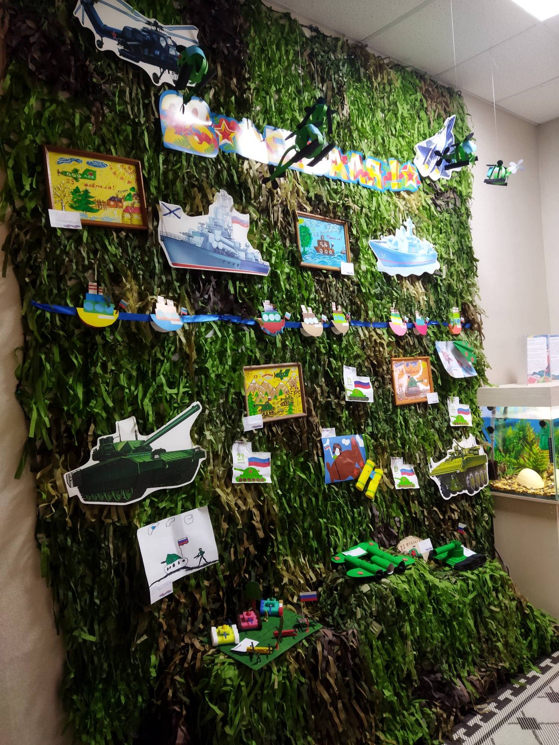 В холле нашего центра открылась выставка творческих работ, посвященная Дню Защитника Отечества. Оригинальные модели военной техники, рисунки, поделки смастерили дошколята и школьники. Приходите - полюбуйтесь! | |