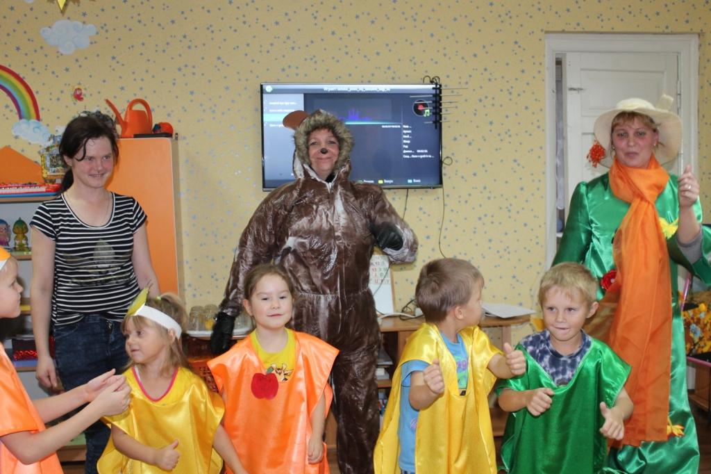 Педагоги группы дневного пребывания Макакенко А.В. и Митяева Е.В. подготовили для детей и их родителей замечательное осеннее развлечение. Взрослые и дети с удовольствием участвовали в соревнованиях, пели песни, танцевали, доставили радость своим родителям чтением стихов. Осень (Митяева Е.В.) загадывала загадки, играла с ребятишками, пригласила на праздник своего друга Винни-Пуха (Сень В.А.).Весело играли ребята, смеялись и шутили, а в конце праздника Осень и Винни - Пух угостили ребят ароматными яблоками. | |